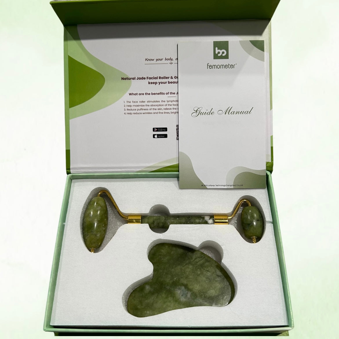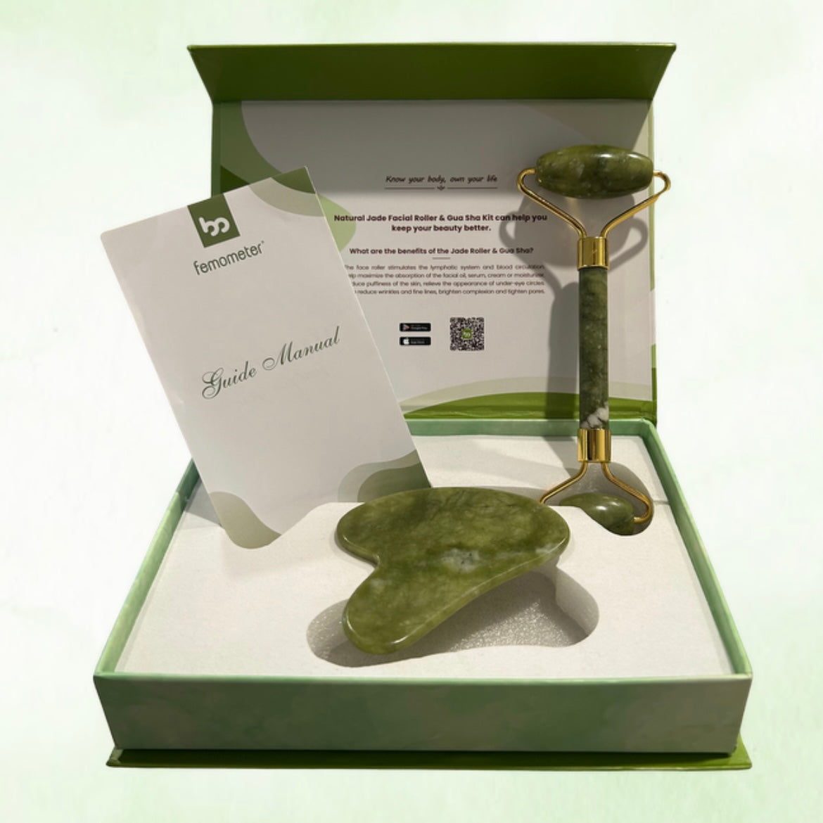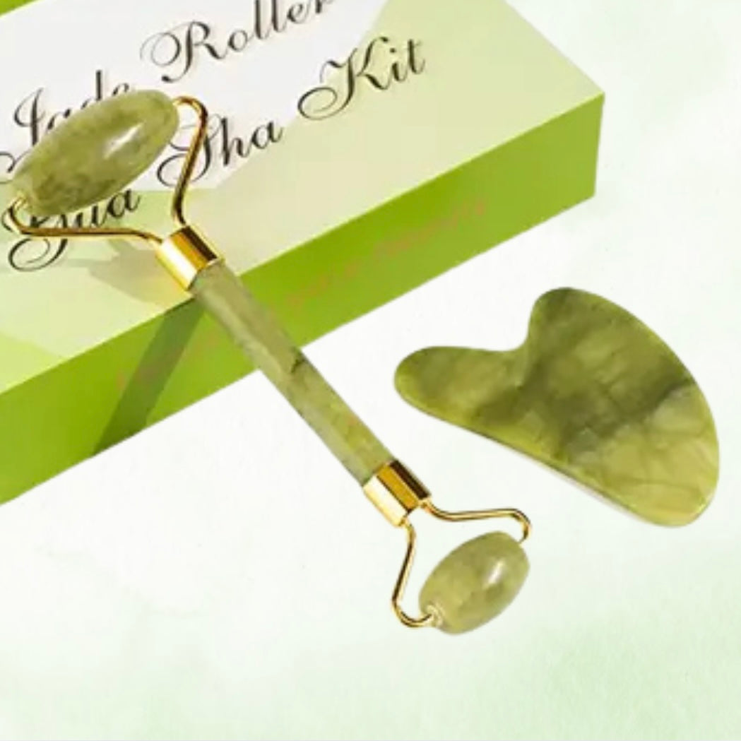 Release stiffness and tension in the facial and neck muscles. This 100% natural Jade roller Gua Sha Kit helps refresh blood circulation and oxygen supply to the skin which can help reduce puffiness and sagging around the cheeks and eyes. It can also be used as a jawline sculptor to minimize double chins.