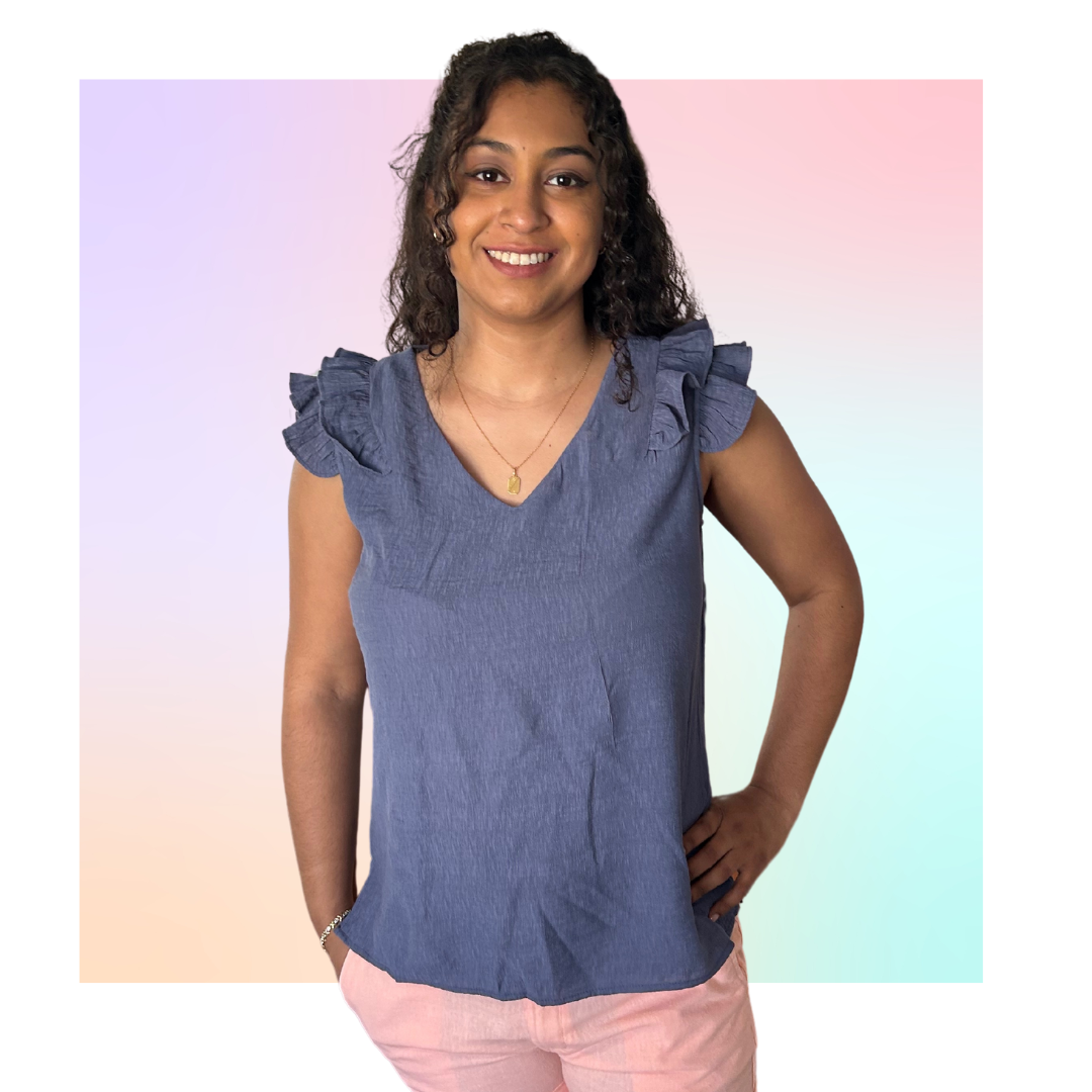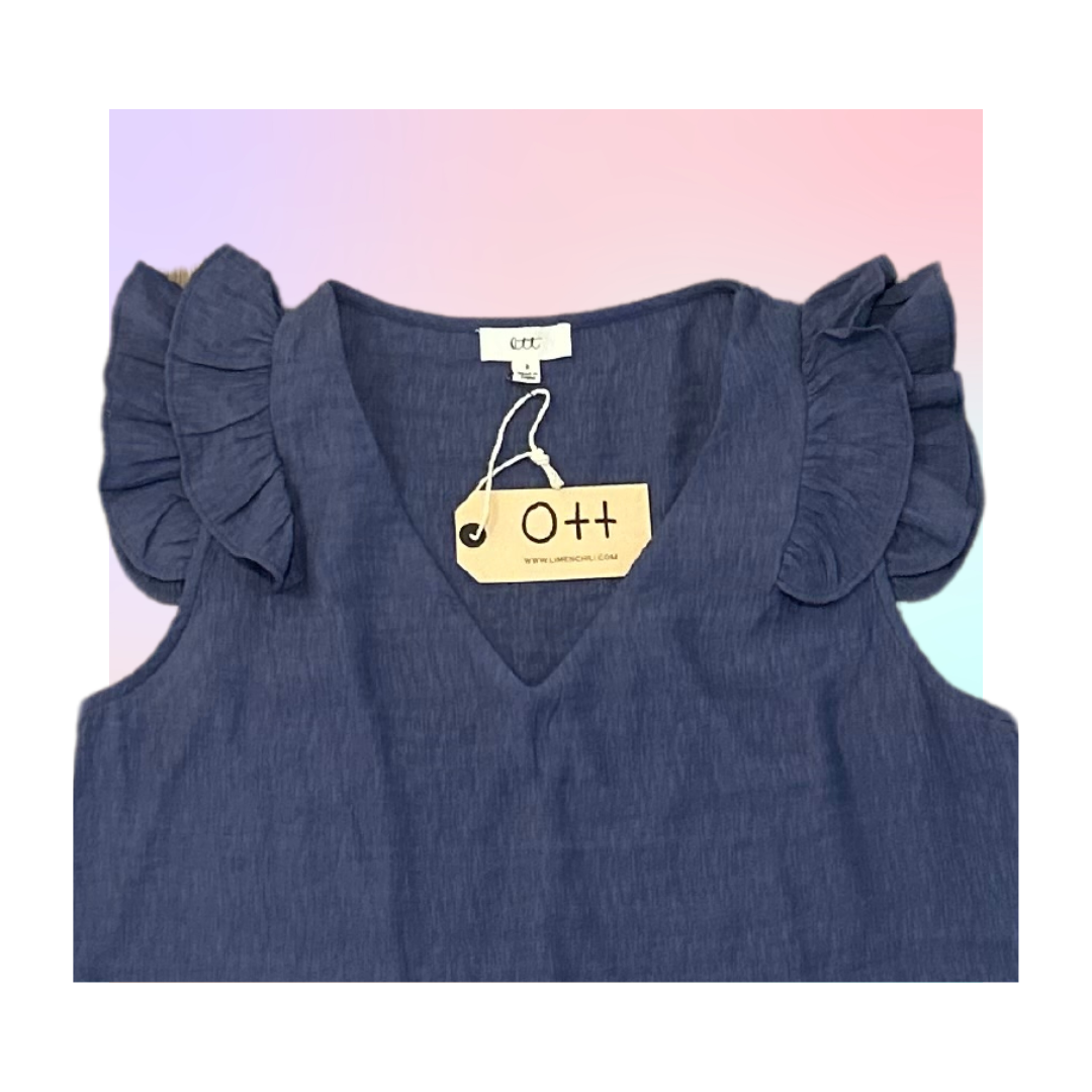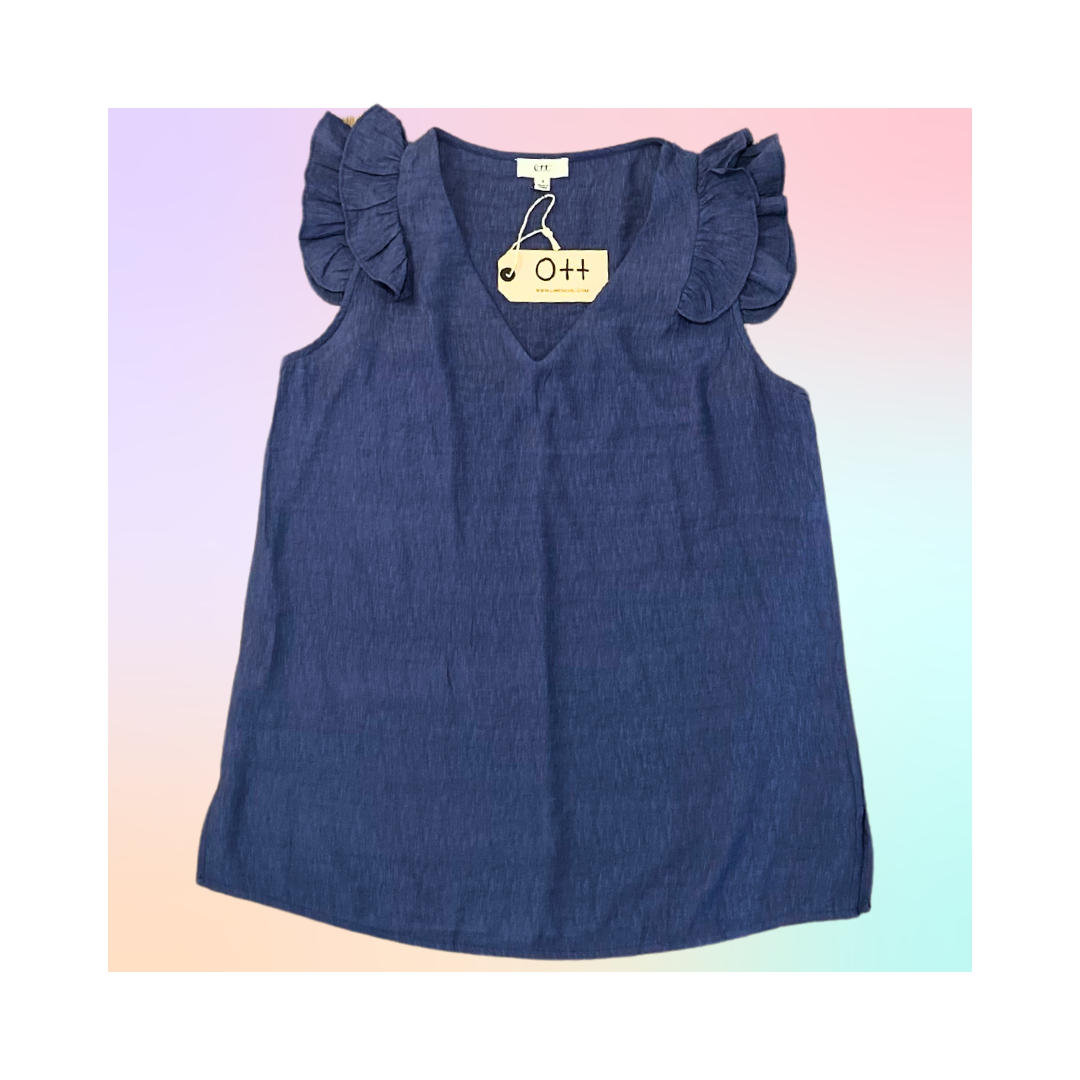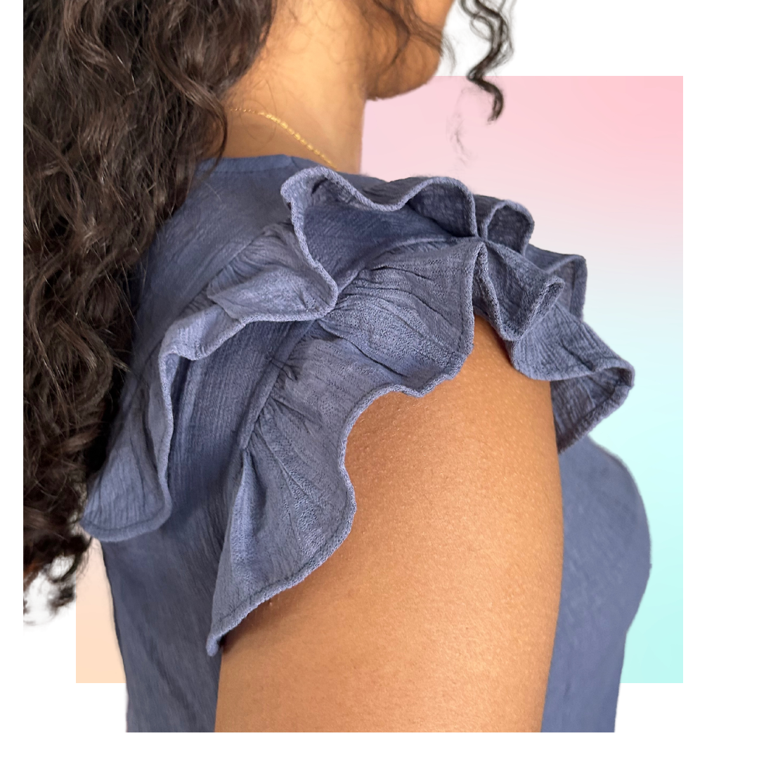 Ruffle Sleeve V Neck Denim Top